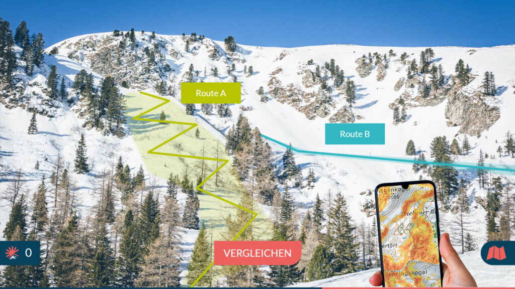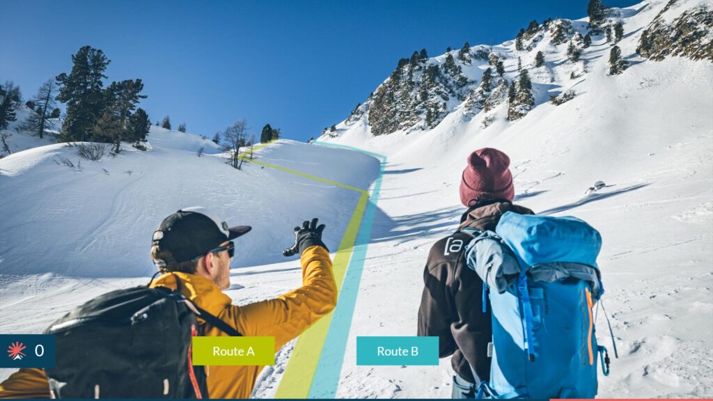 Zu jeder Entscheidung erhältst du konkrete Rückmeldungen von staatlich geprüften Bergführer.