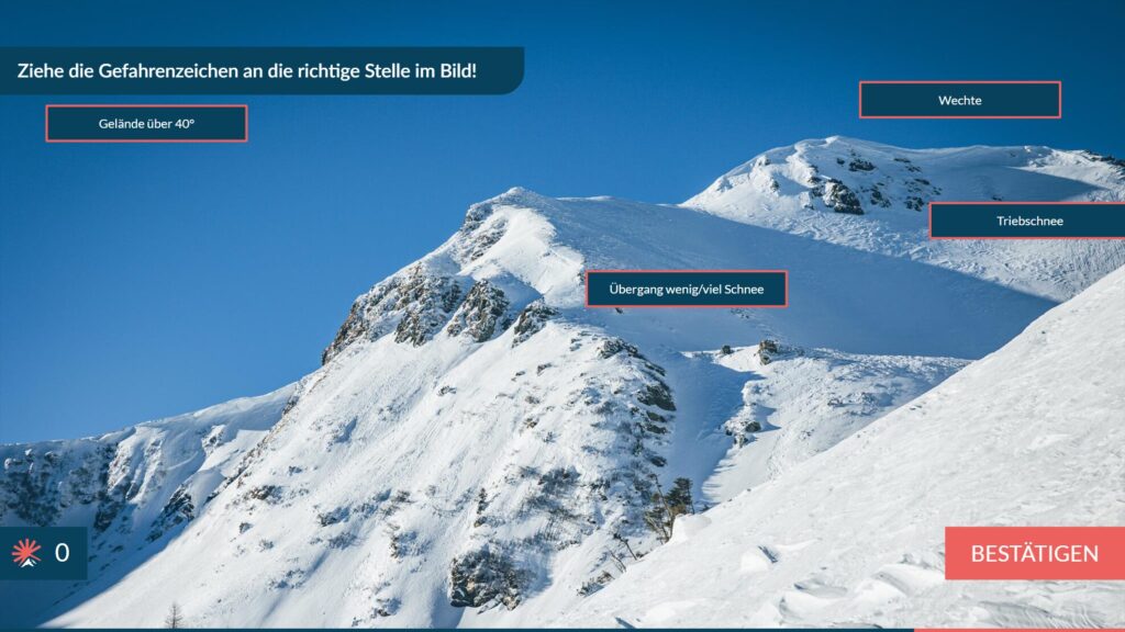- Erkennen von Gefahrenzeichen und deren Kontext zum Lawinenlagebericht